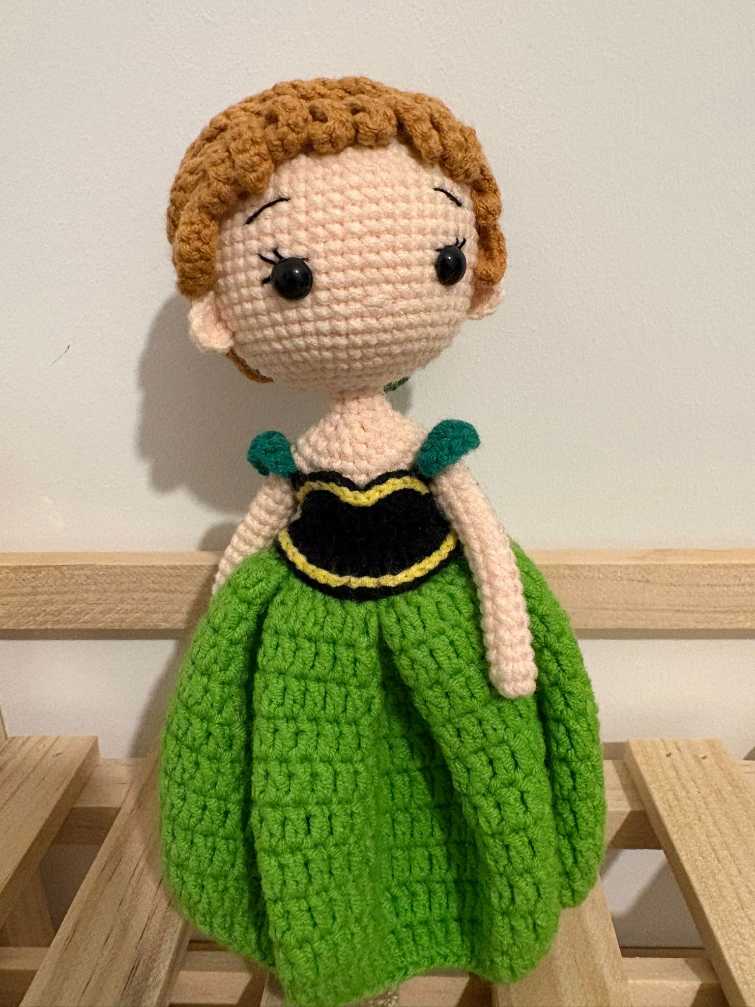 Arendelle’s bravery in the palm of your hand! ✨ This mini Anna Frozen doll is lovingly hand-crocheted (amigurumi) and stands 6 inches (15 cm) tall. Featuring her iconic coronation green dress and signature braided brown hair. 🧡 Made with soft premium cotton yarn, it’s the perfect gift for Frozen fans, princess collectors, and boho decor lovers. A keepsake that will warm any heart! ❄️