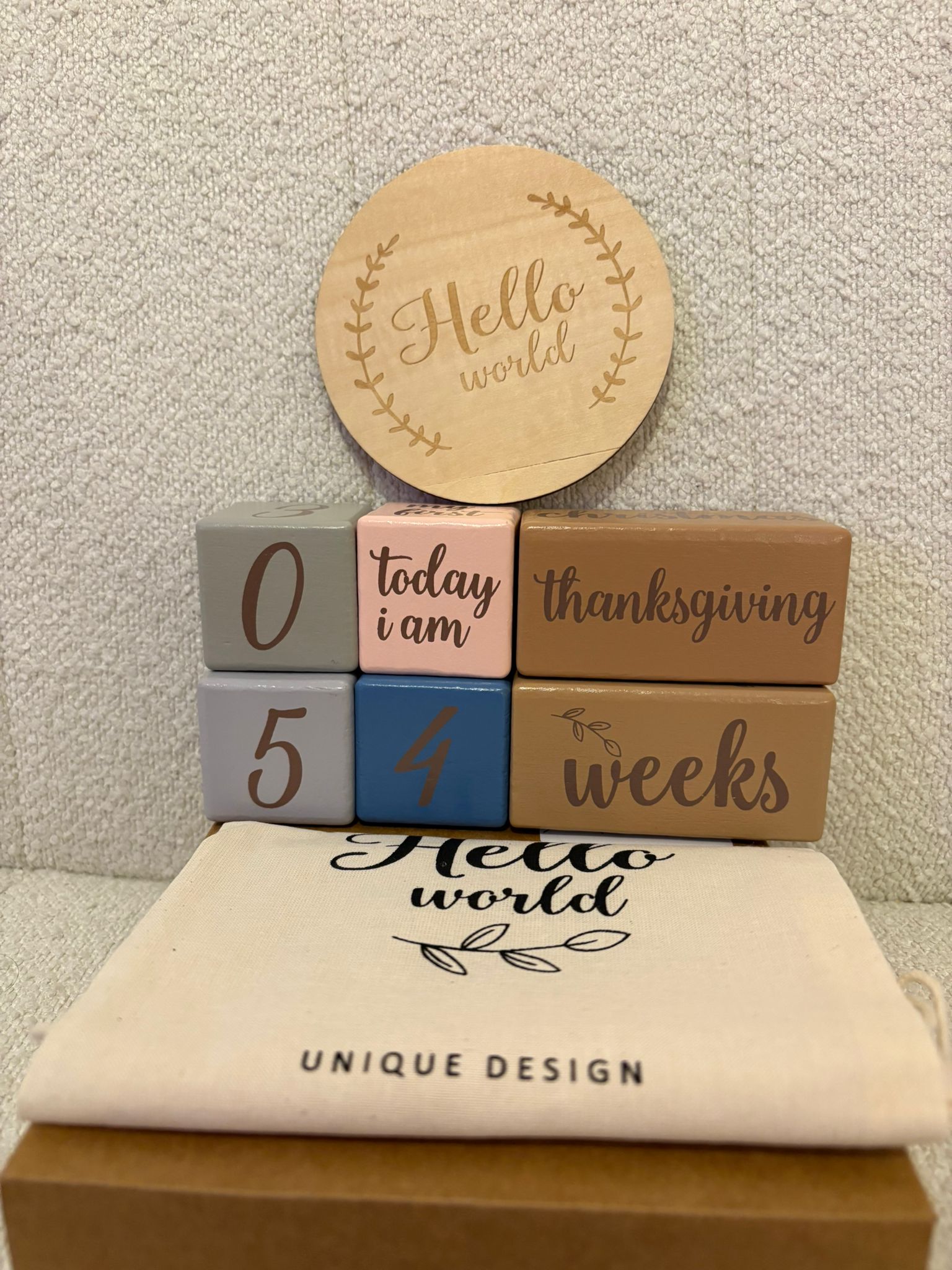 Time flies, but memories last a lifetime! Our beautiful wooden block set is the perfect tool to document your little one’s growth from their very first “Hello World.” 🐣